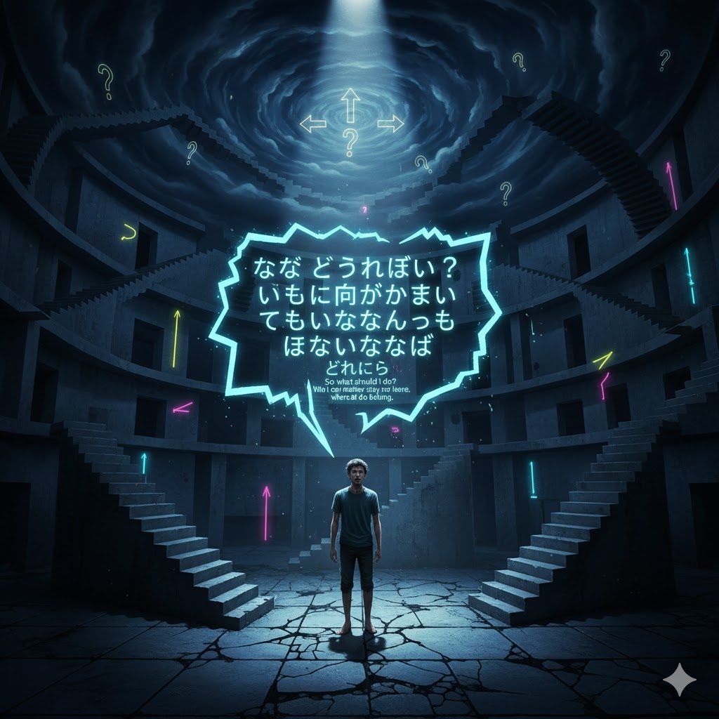 「何を言ったって 何をやったって ダメだダメだって言うんだ ならば どうすればいい? どこに向かえばいい いてもいなくなっても いけないならば どこに」