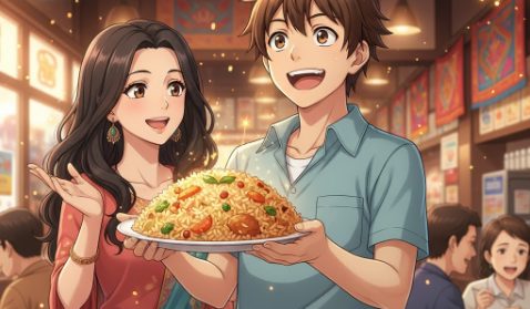「ビリヤニ 最高だよ 南アジアの味 なぜか僕はピンと来たんだ 強引な口実が驚きの結果オーライ!」