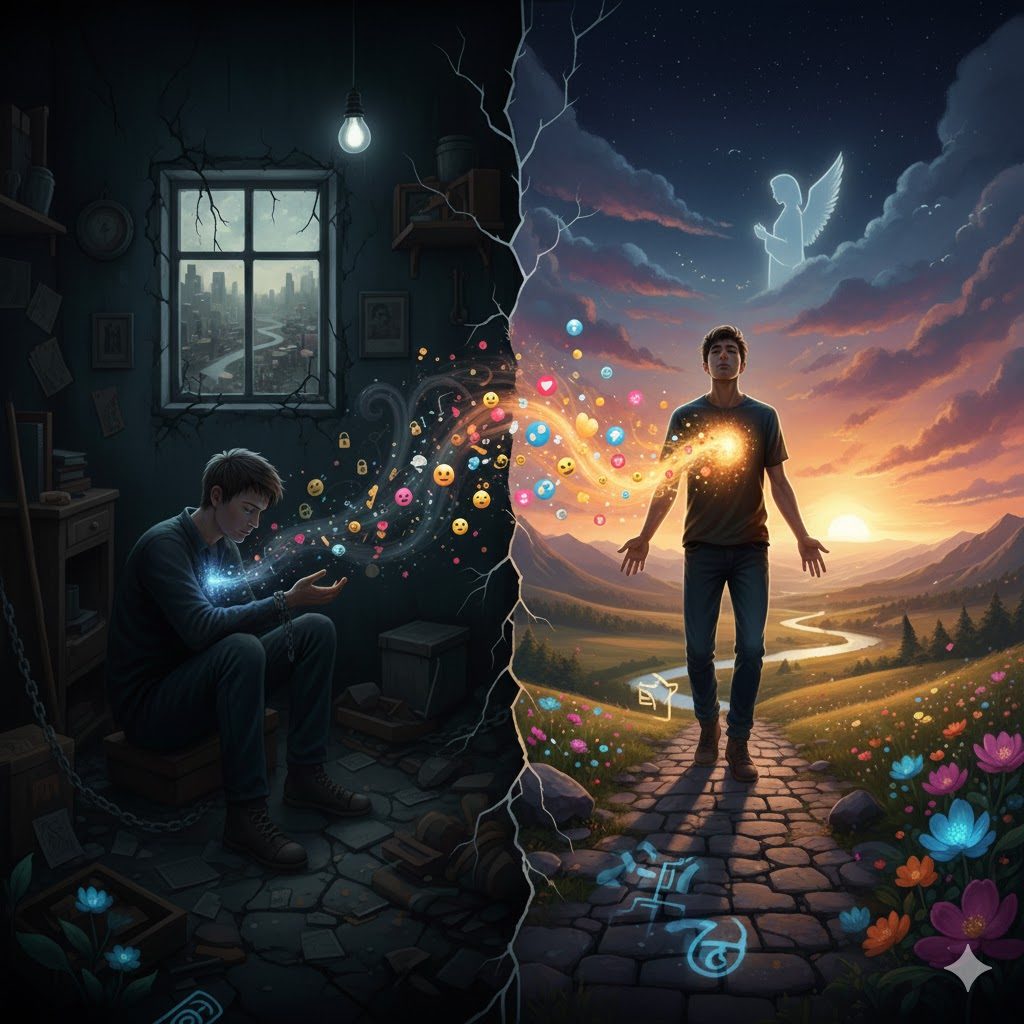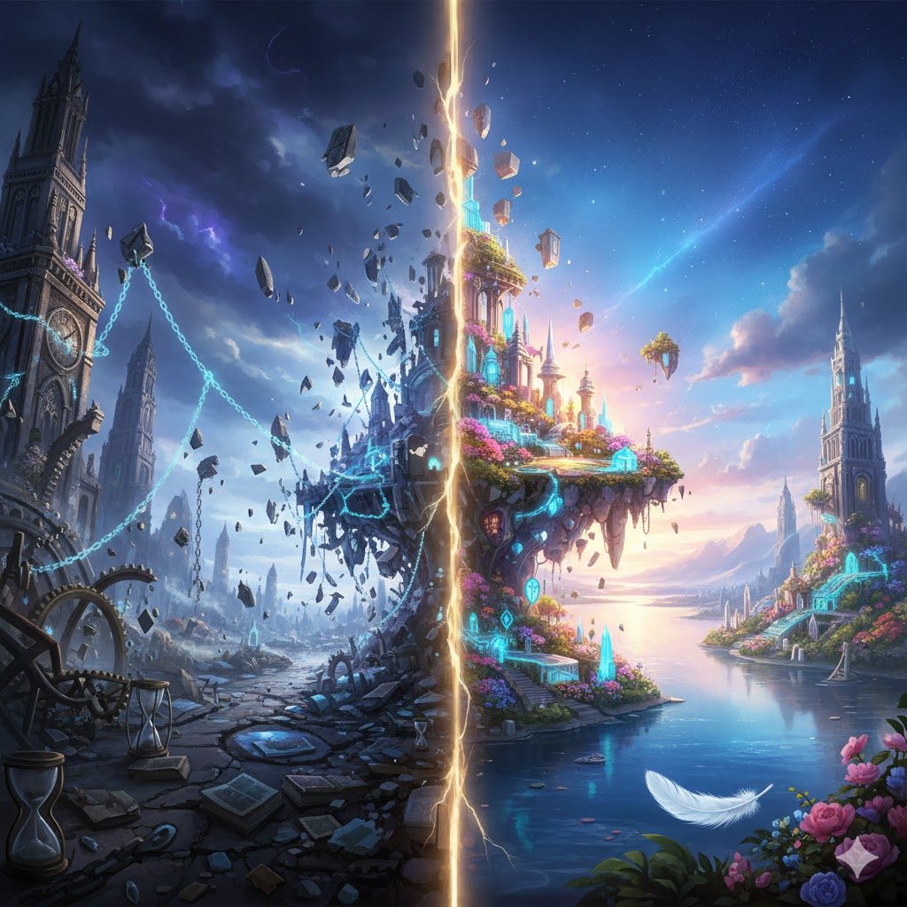 | 崩壊した現実 | 理想の世界 |