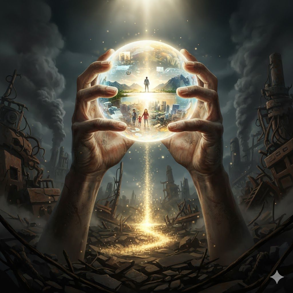両方を見ろ、と言っているのかもしれません。壊れた現実も、理想の未来も、どちらも目を背けずに。