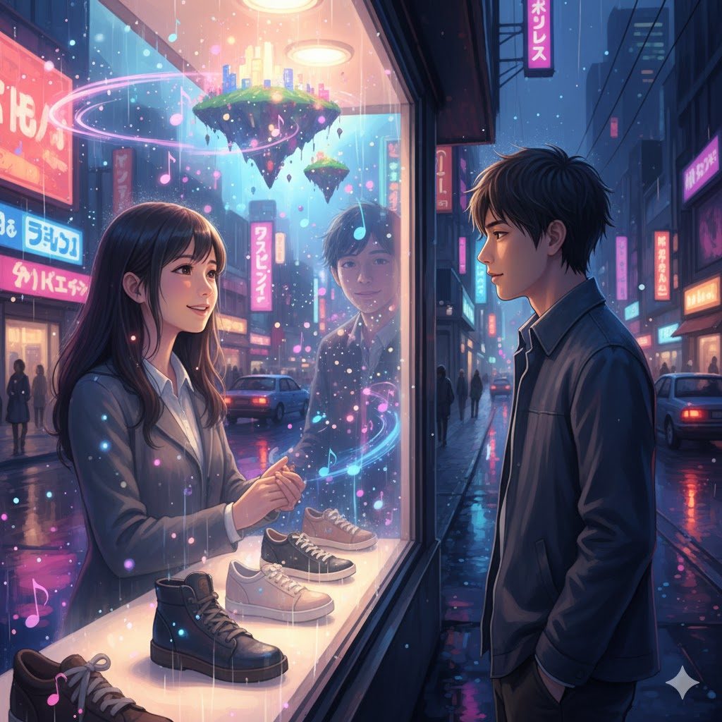 この想像の中の君は、おそらく実際の君よりも美化されているでしょう。片想いの相手は、いつも理想的に見えます。そして、自分が選んだものが似合うだろうと想像することで、束の間、君との関係が近いもののように感じられる。でもそれは、心の中だけの出来事です。現実には、君はそこにいないし、そのプレゼントが渡されることもありません。