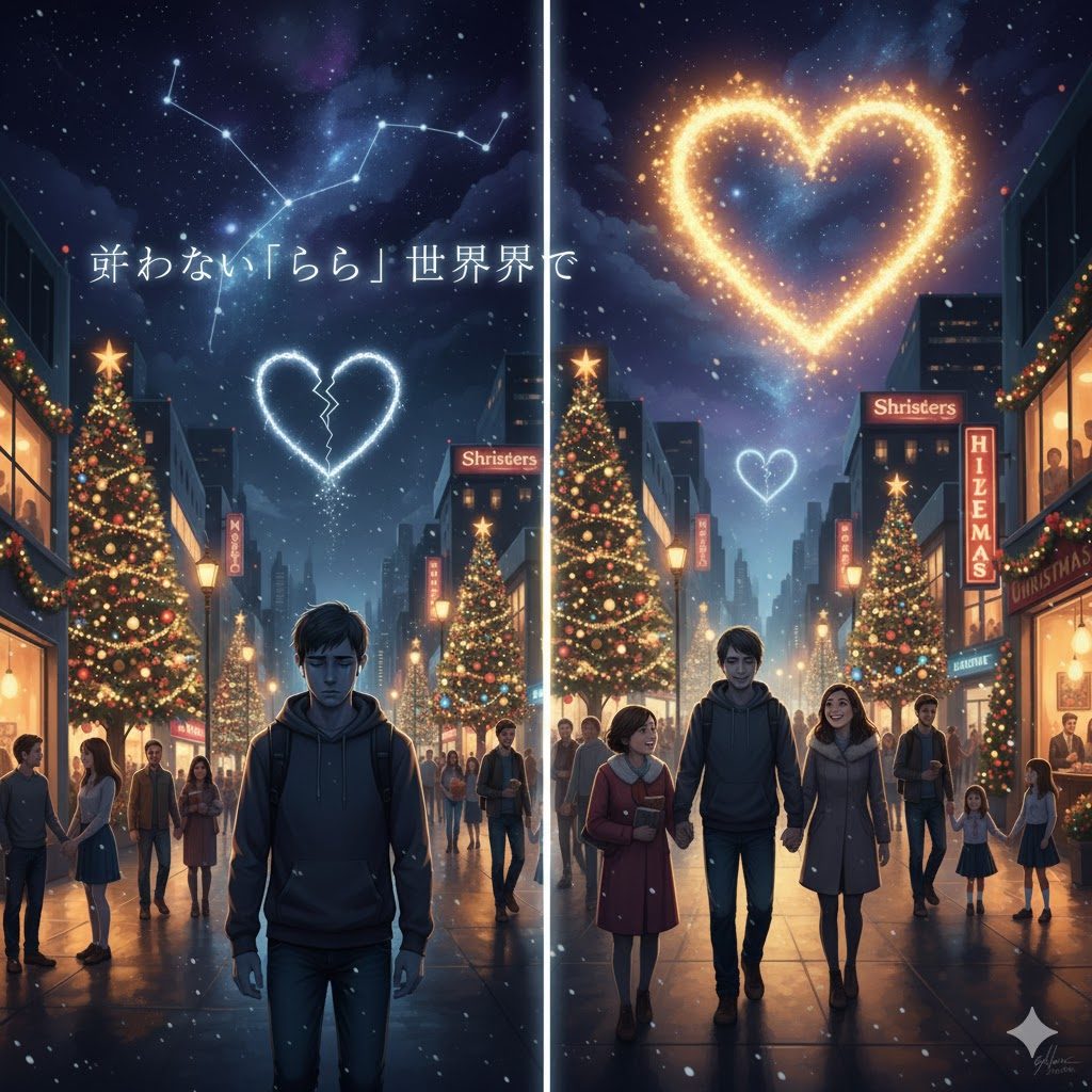 クリスマスという季節は、恋人たちにとっては特別な日ですが、片想いの人にとっては残酷な季節でもあります。街はカップルで溢れ、「誰と過ごすか」が問われる日。この曲の主人公は、そんなクリスマスイブに、一人で「君」のことを想っています。繰り返される「恋人になったら」というフレーズは、願望であり、妄想であり、そして叶わぬ祈りのようにも聞こえます。